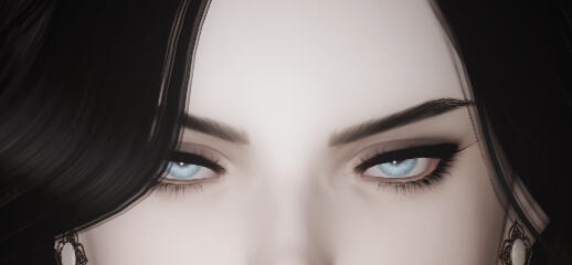 with high cheekbones and soft features; cat-like sapphire blue eyes that appear the -: ·̩ *palest blue in certain lights *·̩ :-
